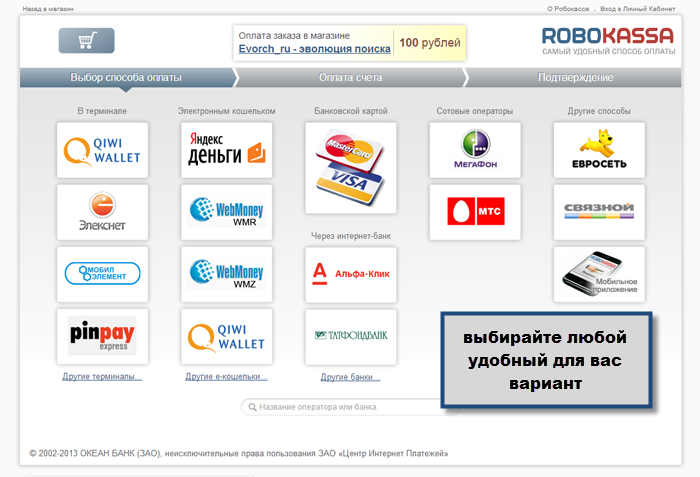 вы попадаете на страницу пополнения. Вводите сумму и попадаете на страницу агрегатора Робокасса, через защитное соединение.