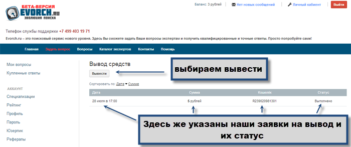 Для вывода заработанных средств, вы можете выбрать любую из предложенных платежных систем. Минимальная сумма для выплаты 50 рублей.