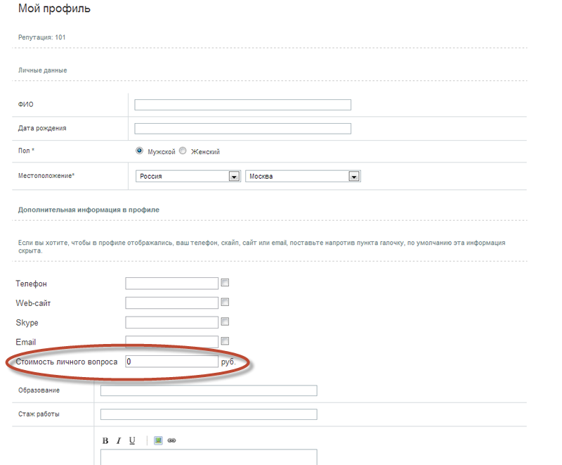 Каждый эксперт может выставить сумму своего личного вопроса. То есть пользователю необходимо будет заплатить эту сумму (пока не заплатил, вопрос задать не получится) чтобы задать личный вопрос эксперту. Сумму эксперт выбирает сам, она может быть равна той сумме, за которую эксперт готов ответить на вопрос пользователя или равняться минимальной сумме 1 руб., чтобы исключить возможность спама в личные вопросы.