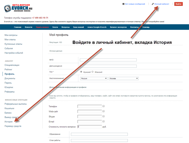 Добавлена возможность просматривать историю платежей за ответы. Какую сумму , какого числа, за какой ответ получил эксперт.
